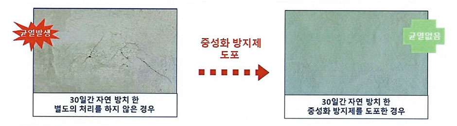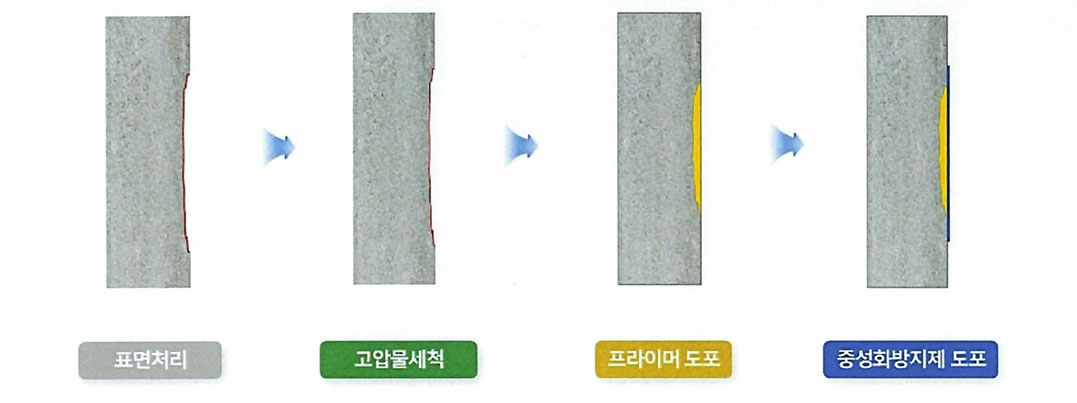 - 구체 강화층이 알칼리 피막을 형성하여 중성화억제, 방수, 방청 효과