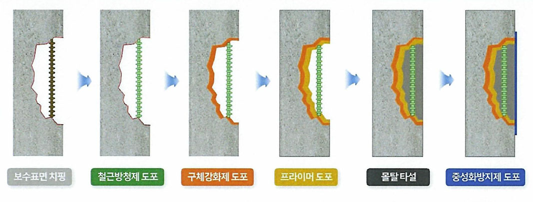 - 높은 강도와 내구성을 확보하여 동시에 내진 저항성을 갖춘 안전한 보수재료